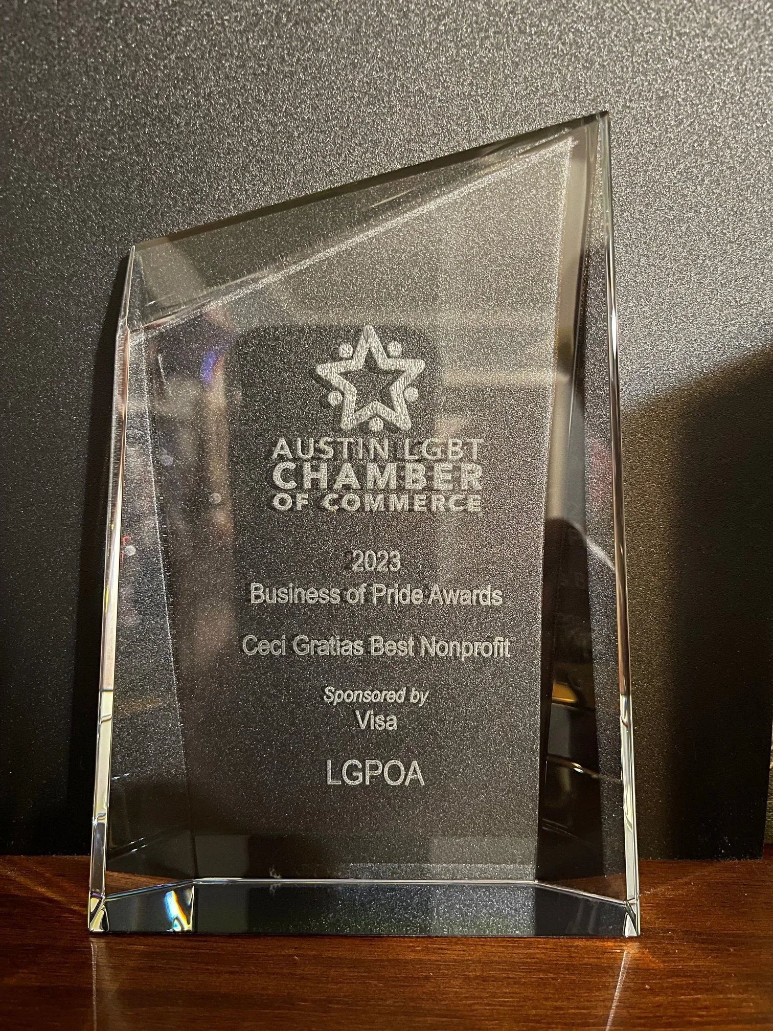 The LGPOA received the Ceci Gratias Best Non-Profit award at the 2023 LGBT Chamber of Commerce Business of Pride Gala.
