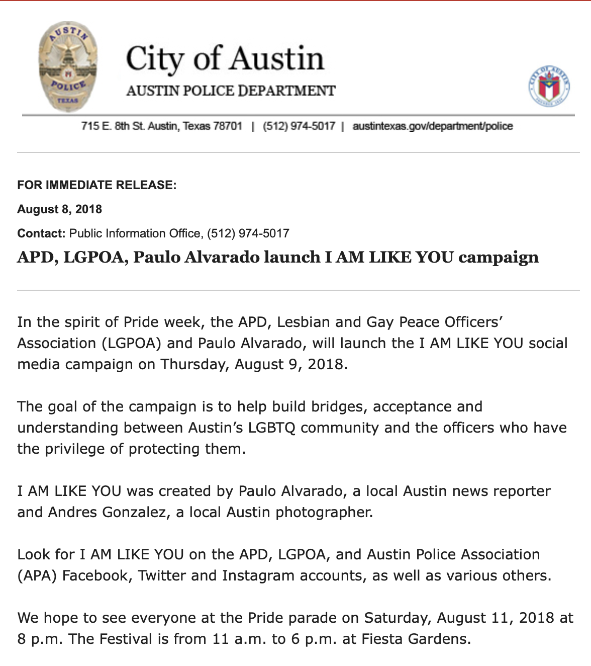 CBS Austin — In the spirit of Pride week, the Austin Police Department, Lesbian and Gay Peace Officers’ Association, and Telemundo Austin reporter Paulo Alvarado are launching a social media campaign.